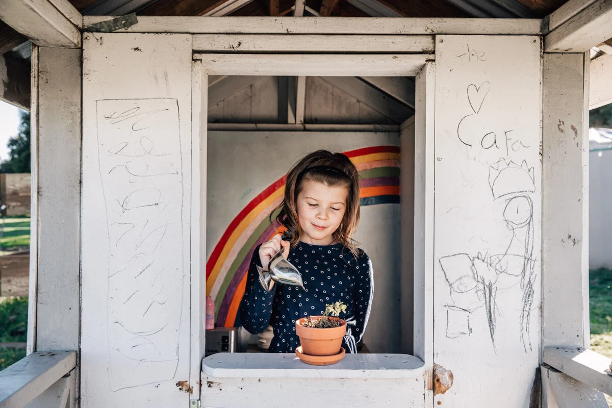 As I was taking photos of this families eldest daughter in the cubby she casually told me, “We call this the love cafe'“ and pointed to the hand drawn sign etched on the wall next to the door. I thought it was the sweetest name, embodying everything that is a cubby. A place where happy memories are made and adventures start, a space that transforms into whatever you want, a cafe, a post office, a house to play ‘Mums and Dads’ in.